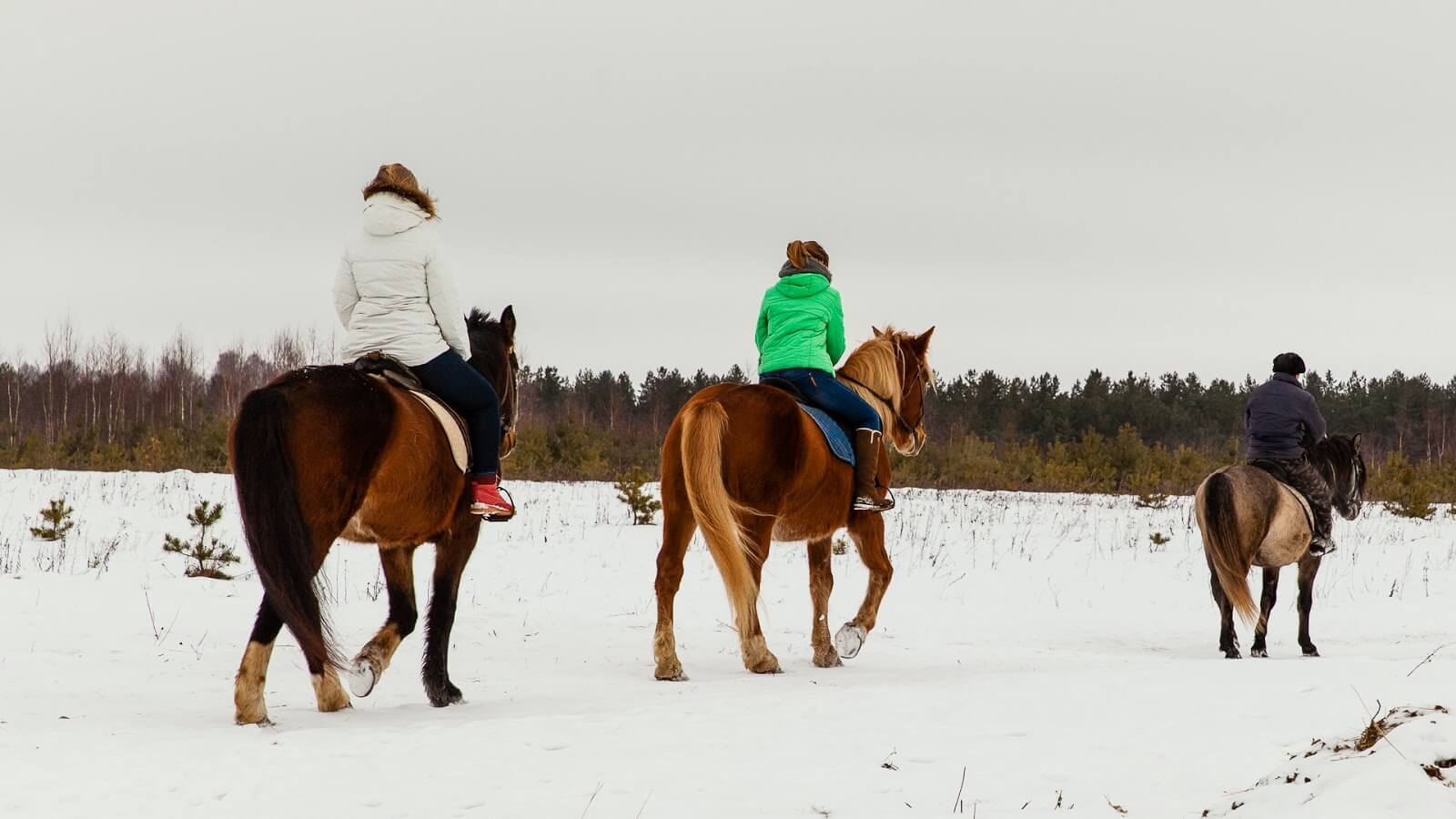 Заснеженные поля, заметенные лесные тропы притягательны для наездников, которые выбирают катание. Конные прогулки к замерзшему роднику реки совершаются зимой, если температура воздуха не опускается ниже -15 °C. Езда с лошадками в это время года требует тщательного подхода к выбору верхней одежды, обуви, головных уборов. Несомненным бонусом при выборе активного отдыха на морозе являются роскошные фотографии гостей клуба на фоне белоснежных полей, парка и покрытой льдом Люллинской жемчужины.